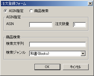 まず登録フォームはこんな形に変えました。変更点は見ての通り下にある「商品検索」フォームです。ここに欲しい商品のタイトルに含まれているであろう文字列を入力して下さい。